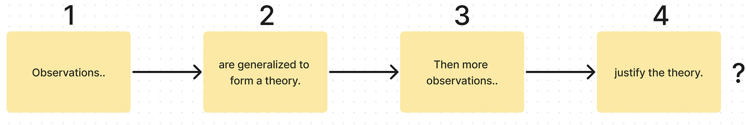 there is a logical gap: no amount of deduction applied to statements describing a set of experiences can reach a conclusion about anything other than those experiences. — page 5