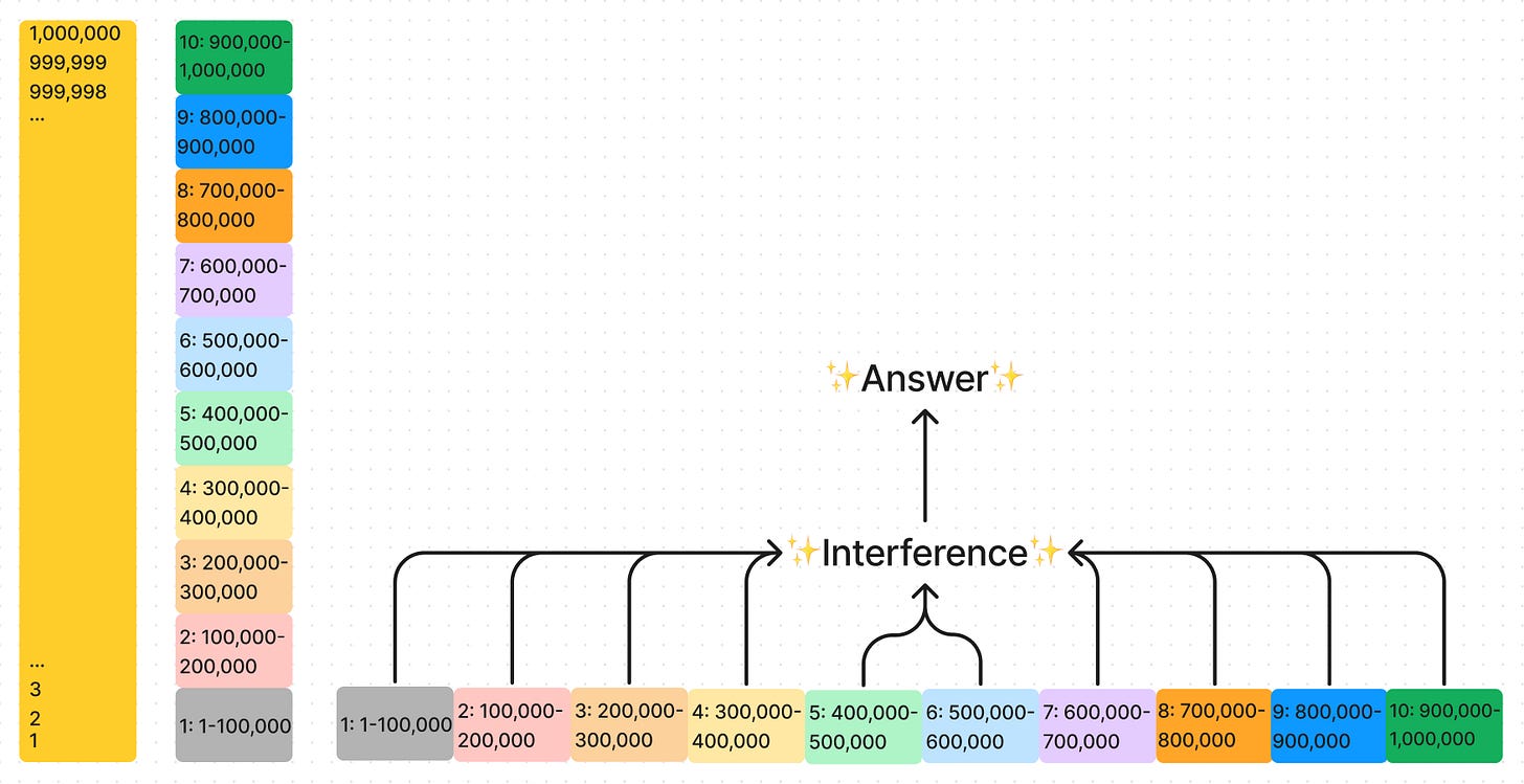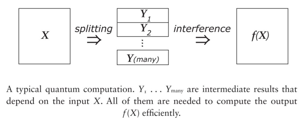 When a quantum factorization engine is factorizing a 250-digit number, the number of interfering universes will be of the order of 10^500 - that is, ten to the power of 500. This staggeringly large number is the reason why Shor’s algorithm makes factorization tractable. I said that the algorithm requires only a few thousand arithmetic operations. I meant, of course, a few thousand operations in each universe that contributes to the answer. All those computations are performed in parallel, in different universes, and share their results through interference. — The Fabric of Reality, page 216