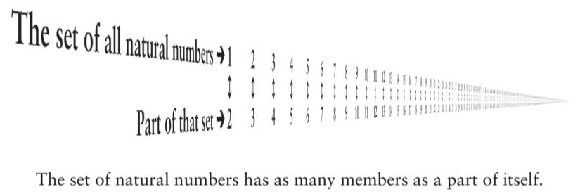 This is the defining characteristic of an infinite set — some parts of it are as big as a whole.