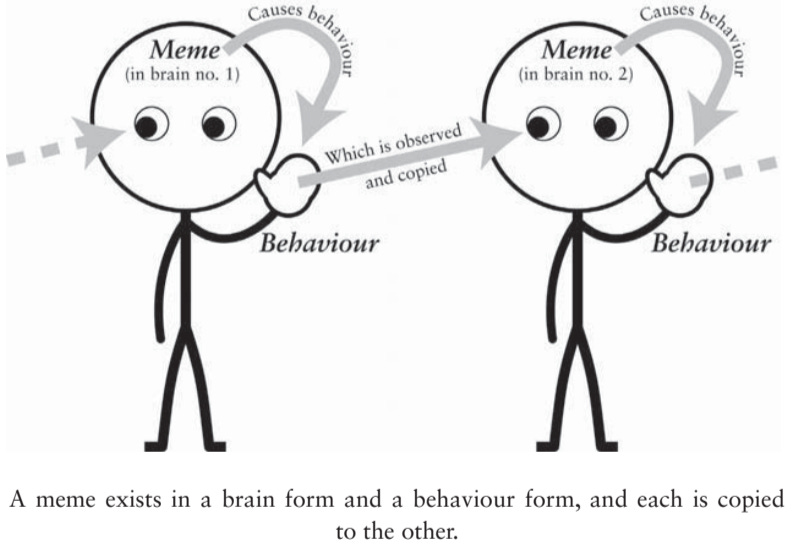 Such molecules are called replicators. More generally, a replicator is any entity that causes certain environments to copy it. Not all replicators are biological, and not all replicators are molecules. For example, a self-copying computer program (such as a computer virus) is a replicator. A good joke is another replicator, for it causes its listeners to retell it to further listeners. Richard Dawkins has coined the term meme (rhyming with ‘cream’) for replicators that are human ideas, such as jokes. — The Fabric of Reality, page 170